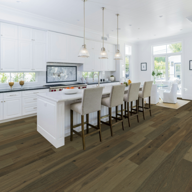 The True collection is truly amazing with stunning colors and features. Hallmark Floors is the first to master this revolutionary technology of replicating “the bog-wood process” that occurs when logs lie buried in lakes, river, and waterways for hundreds of years, deprived of oxygen and sunlight. This process in nature can take centuries for the wood to turn from its natural color to deep golden brown or even completely black. Hallmark has emulated nature’s methods to create saturated colors throughout the top layer, creating stunning, weathered patinas. True bog-wood, driftwood, and weathered barn wood are all very rare. These cherished wood treasures are in high demand worldwide for use in furniture and flooring. Now Hallmark has made these prized finishes available to everyone through our True hardwood flooring collection.